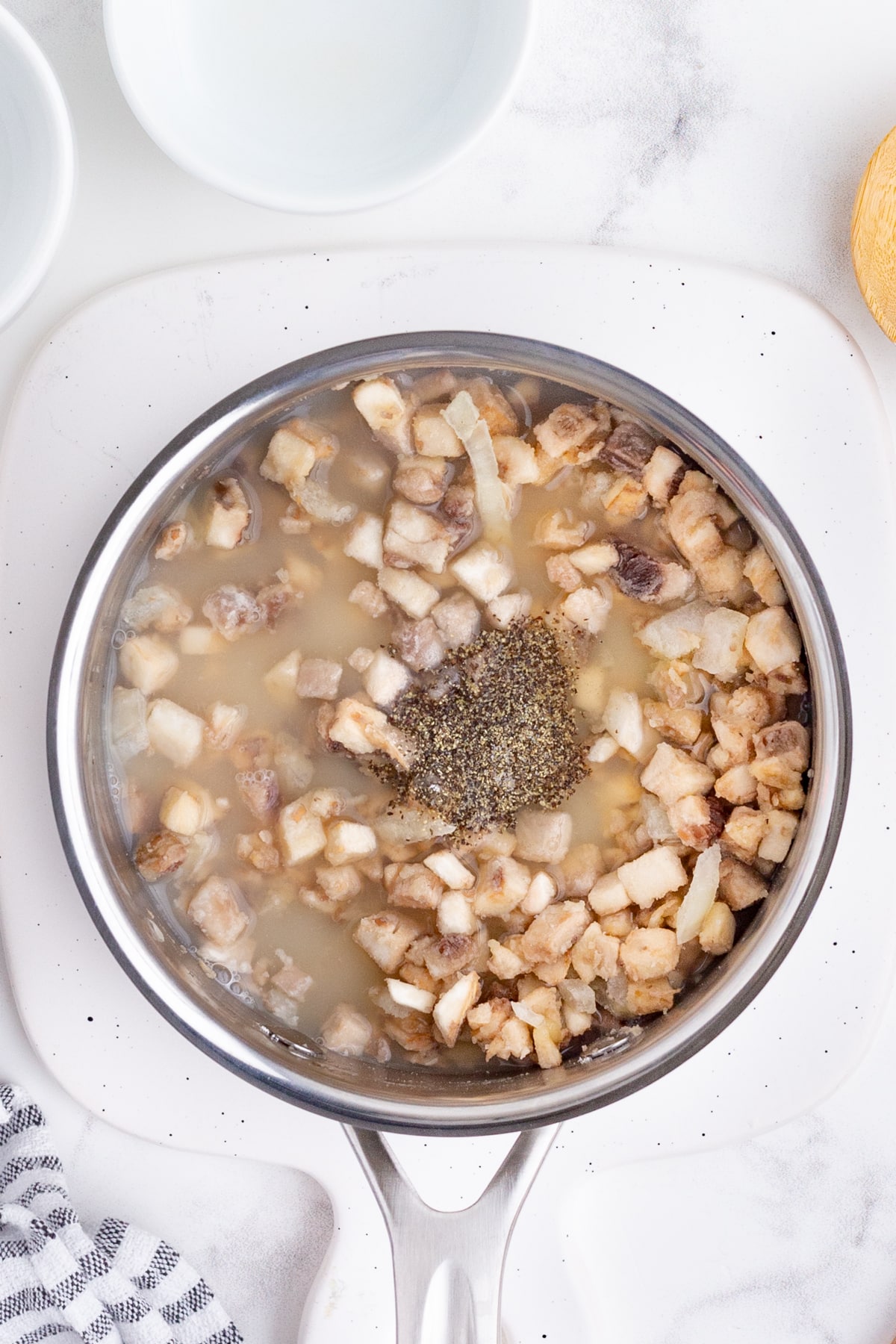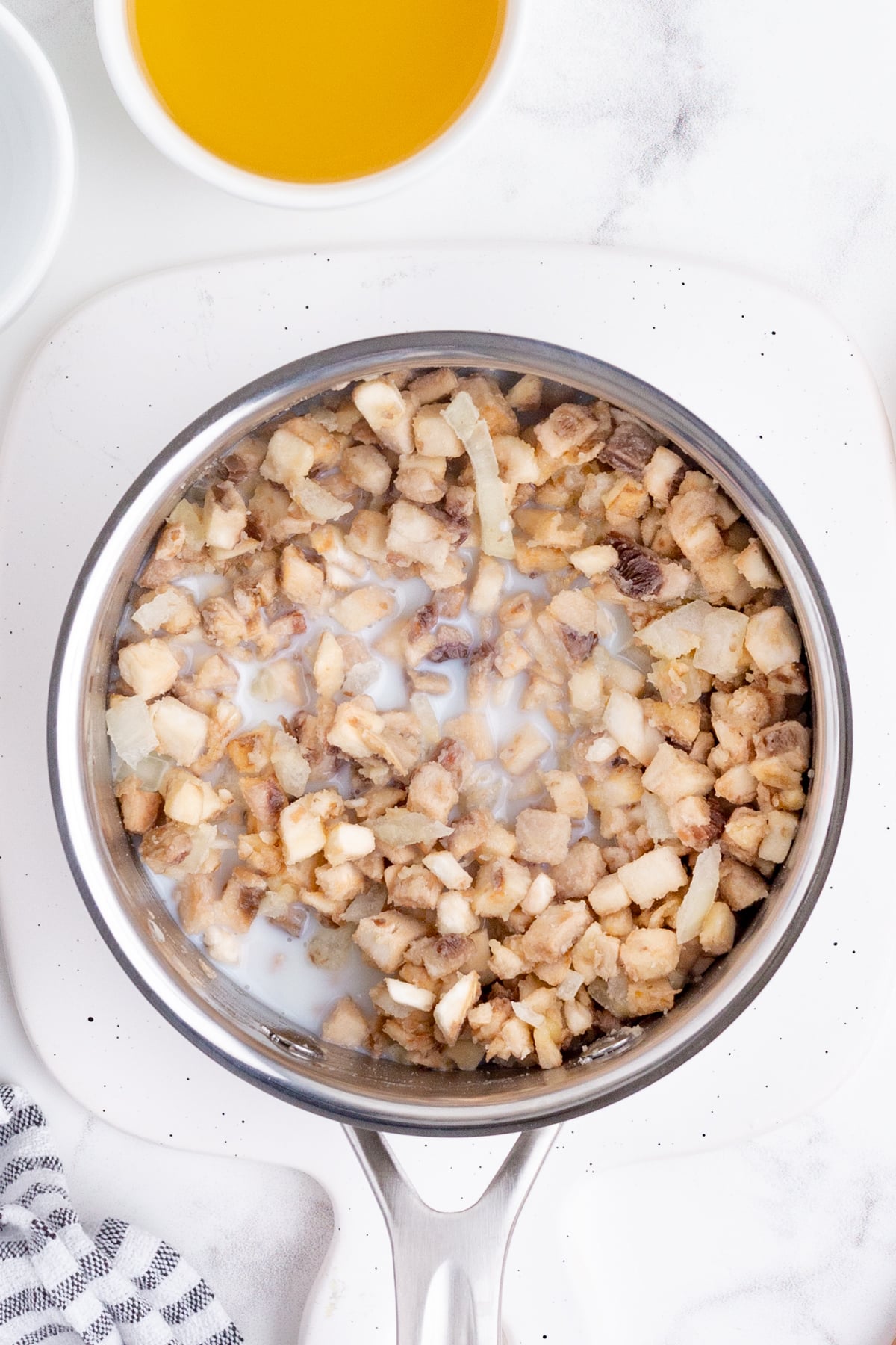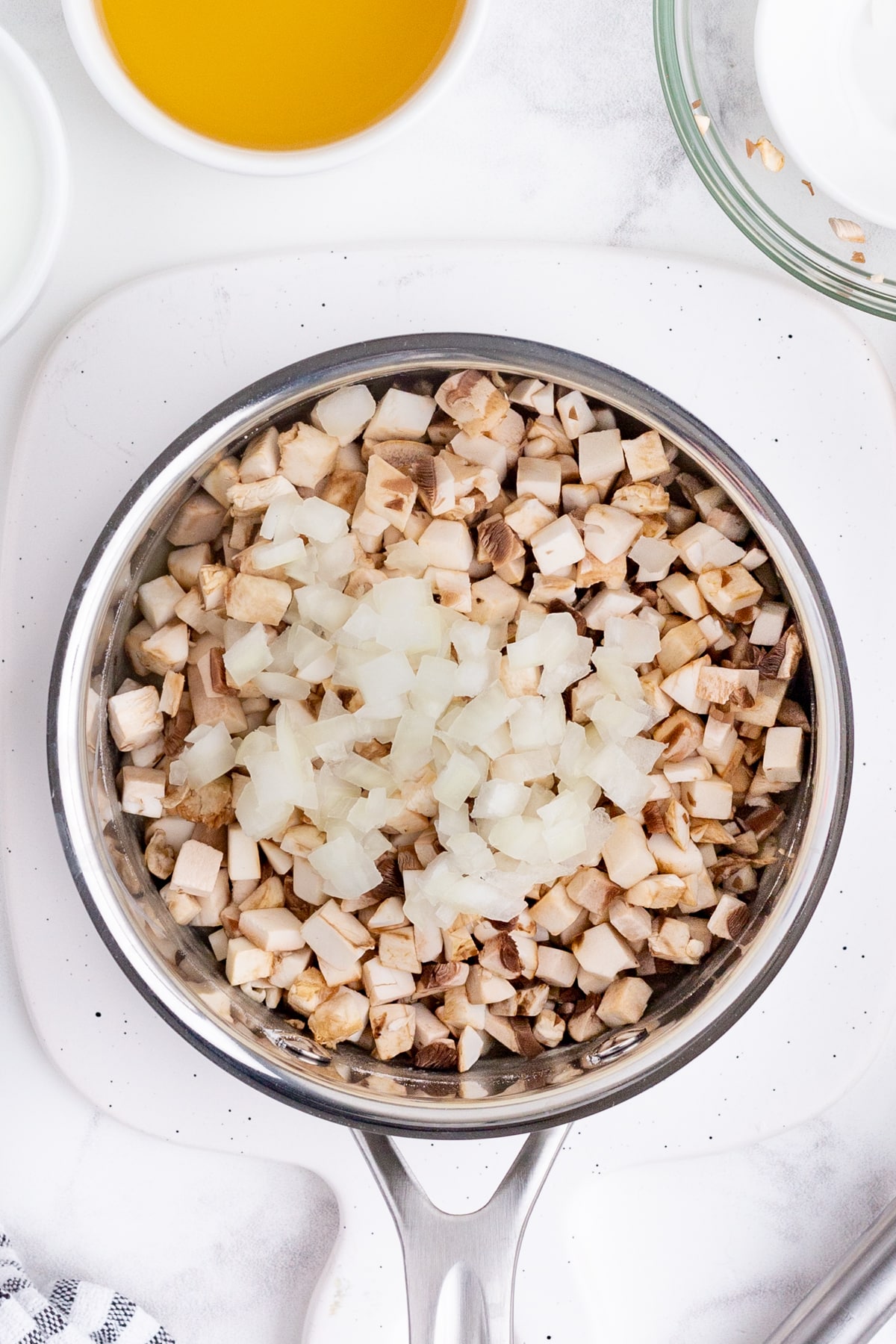 Add the diced onion and mushrooms to the pot. Continue to cook for a couple more minutes until softened.