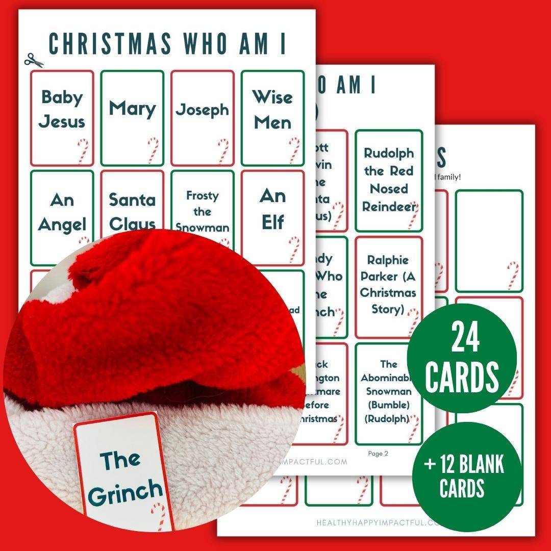Buy cheap Santa hats and tape. Then tape the free cards to the Santa hats. I used double-sided tape to make it even quicker. Then, take turns asking yes-or-no questions about the character on your head to figure out who it is