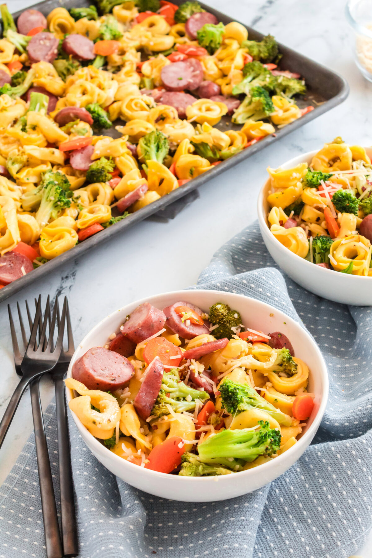 Sheet Pan Tortellini Bake with Kielbasa & Veggies
