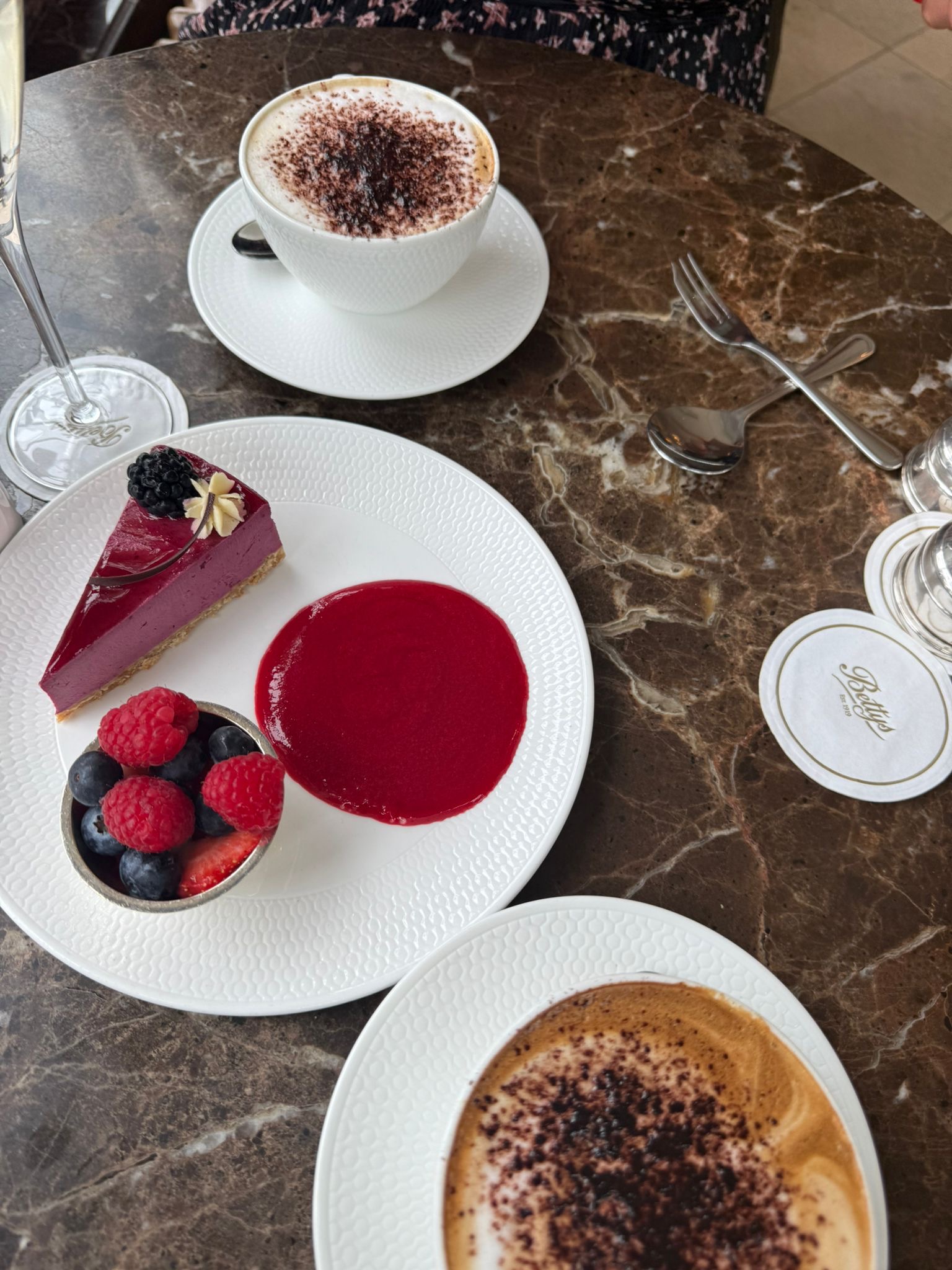 In partnership with my more exercise-fixated self is an on-going but stricter commitment to a low (not no) carb diet for at least 90 percent of the time, limiting lactose where possible too, which seems to aggravate me. The cheesecake you see above enjoyed with my beautiful and always stylish friend Rachael (of Meadow Farm luxury candles) at Betty’s accounted for the other 10% of the time that week,m and was definitely not carb or lactose free! Moderation folks, even when it comes to moderation itself.