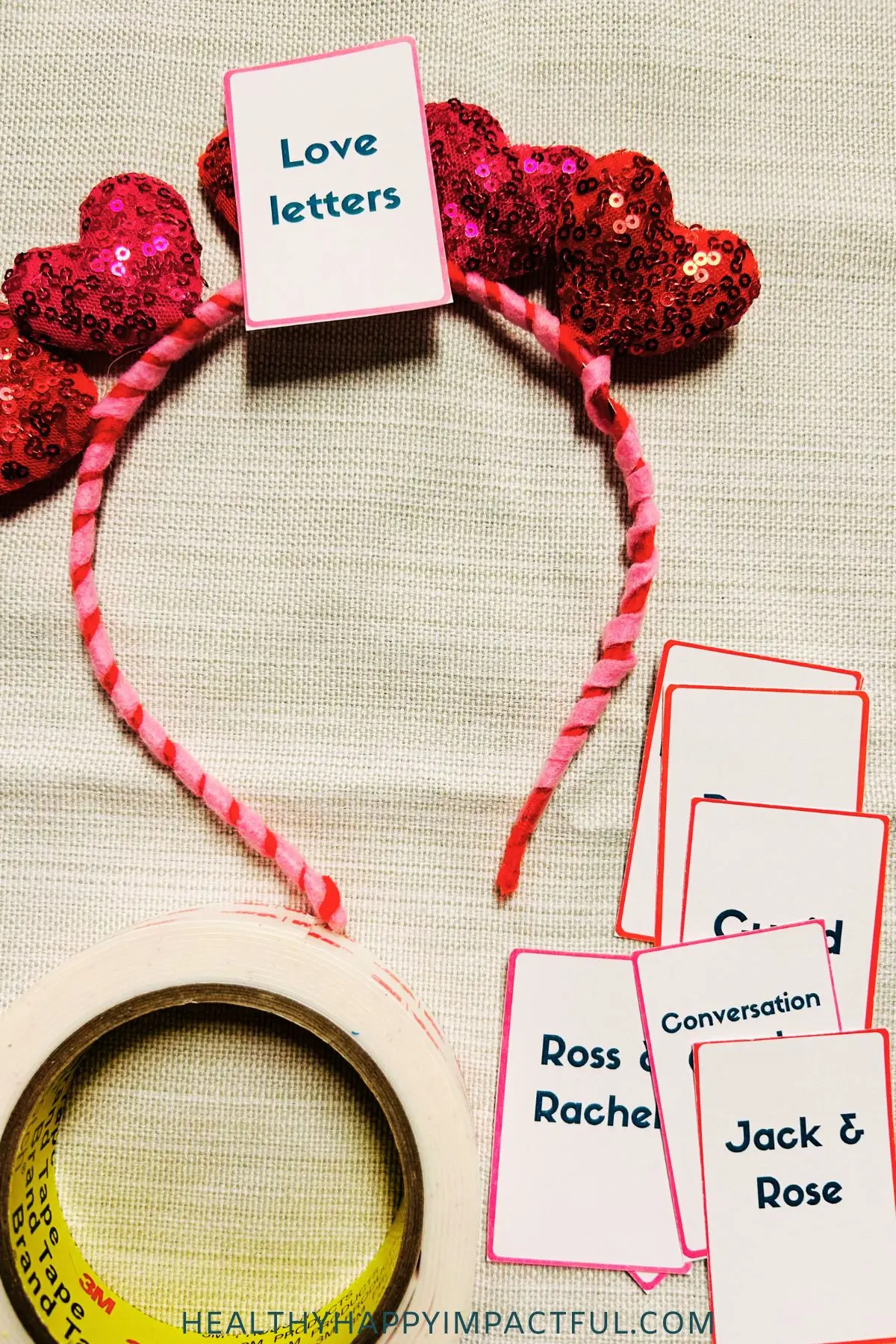 2. Use hats or headbands and tape. Then tape the cards to the hats/headband. I used double-sided tape to make it even quicker. This option is crazy easy if you can get the headgear easily.